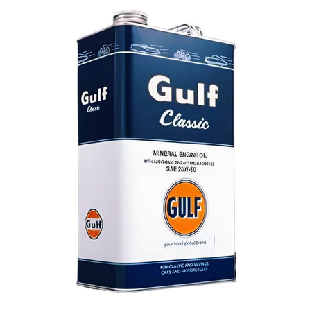 Gulf Classic 20W-50 Motor Oil is designed for gasoline and diesel-powered classic cars. This high-quality mineral oil, enhanced with performance additives and anti-wear agents, provides exceptional engine lubrication, corrosion protection, and compatibility with classic seals and rubbers.;